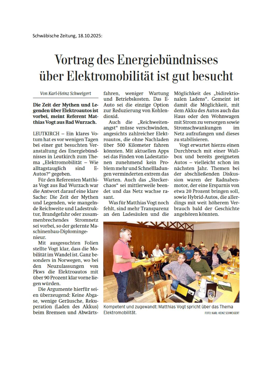 Die Zeit der Mythen und Legenden über Elektroautos ist vorbei, meint Referent Matthias Vogt aus Bad Wurzach